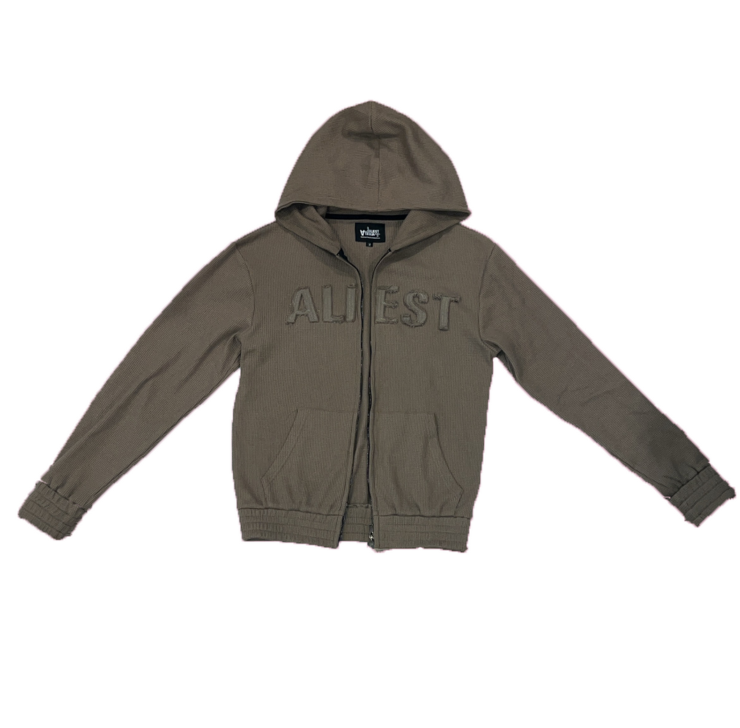 Aliest Thermal Zip Up Hoodie - Neutral Green